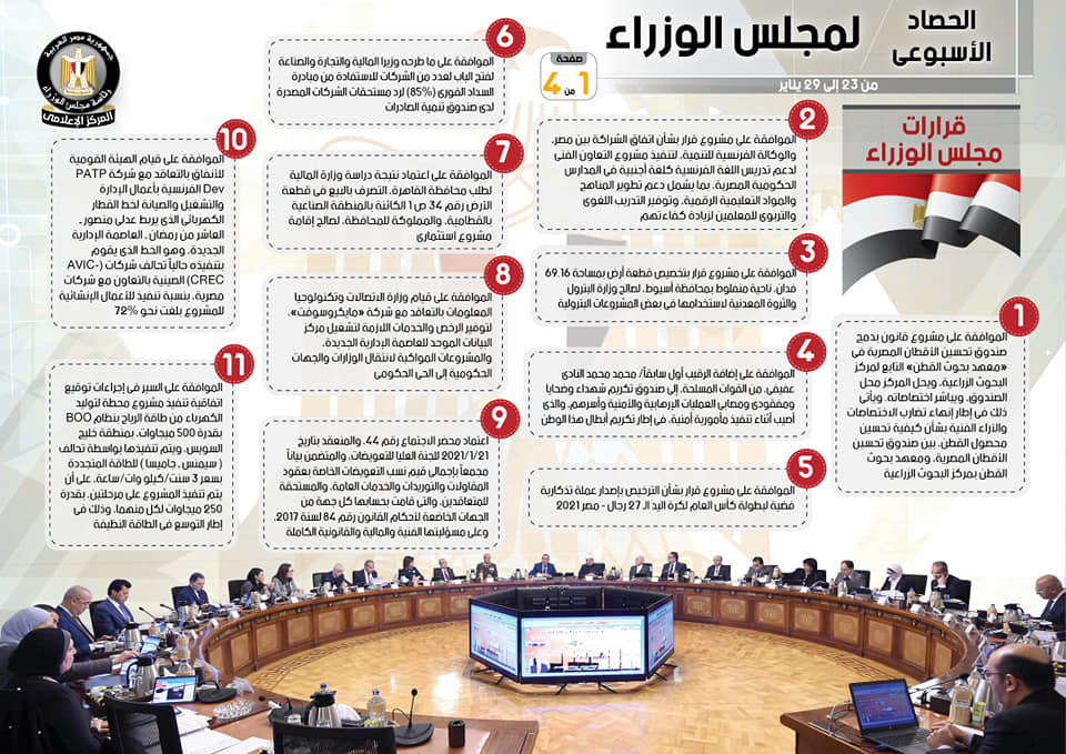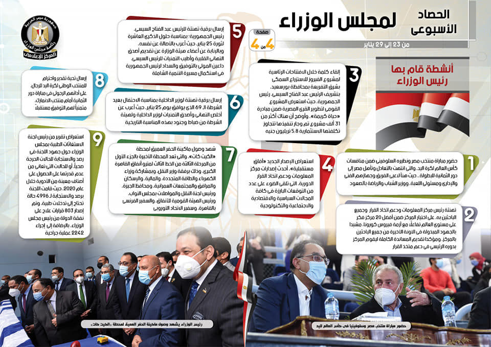 The post بالإنفوجراف.. الحصاد الأسبوعي لمجلس الوزراء خلال الفترة من 23 يناير إلى 29 يناير first appeared on النيل - قناة مصر الإخبارية.
