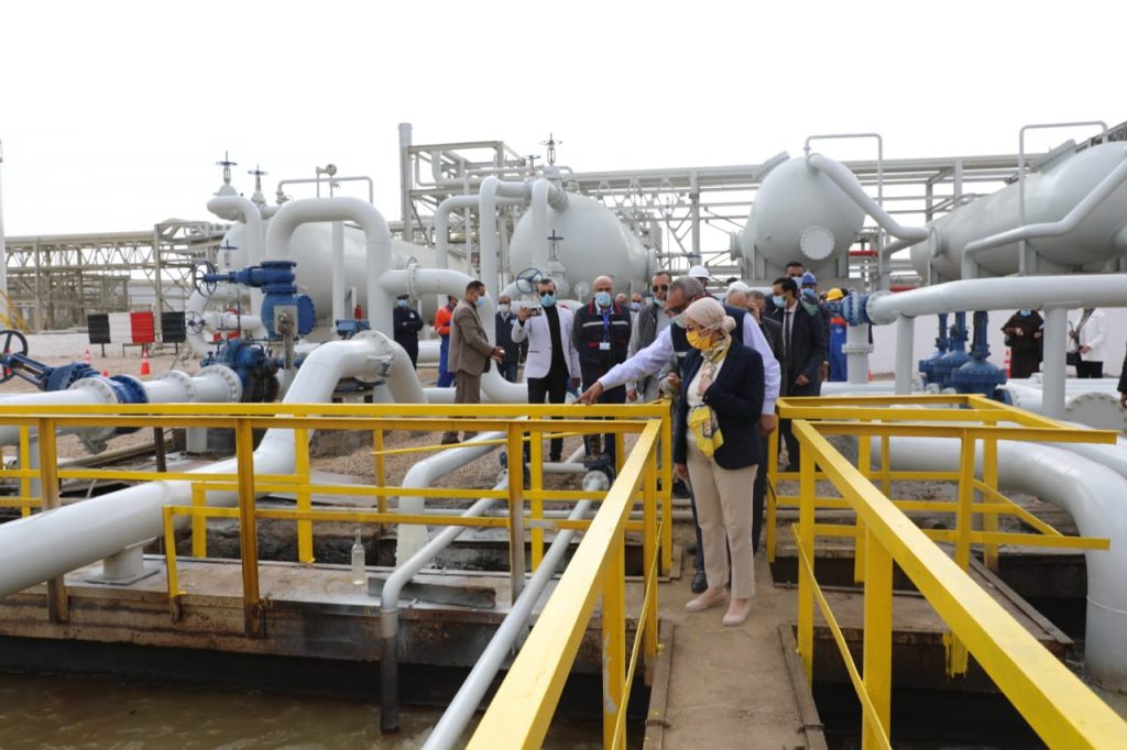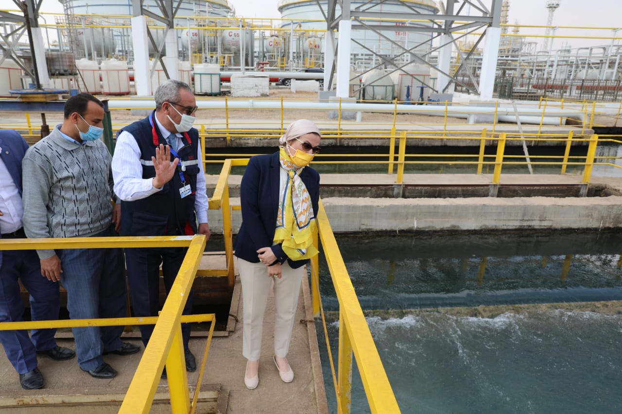 وأضافت وزيرة البيئة أن نسبة تنفيذ خطة الإصحاح البيئى لشركة النصر للبترول بلغت (58%) حيث تم تشغيل الوحدة التجريبية (المرحلة الأولى) بصورة منتظمة ومستمرة لاستيعاب كمية مياه الصرف الصناعى بالكامل (حوالى 550 متر مكعب/ ساعة) ليتم معالجتها ودخولها كتغذية للمرحلة الثانية من المعالجة وذلك بقيمة إجمالية بلغت حوالى (25 مليون جنيه)، مشيرة إلى قيام جهاز شئون البيئة بسحب عينات من داخل وخارج مياه الصرف الصناعى للشركة حيث تبين مطابقتها لمعايير الصرف على البيئة البحرية الواردة بقانون حماية البيئة.
