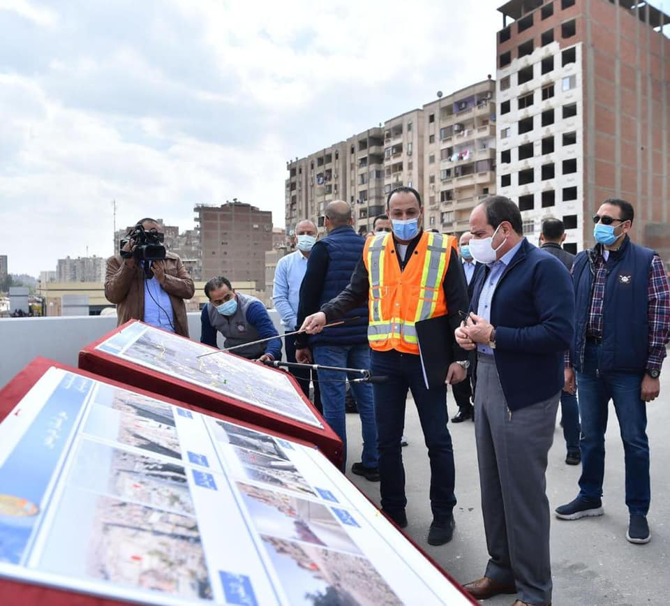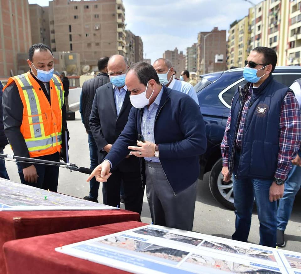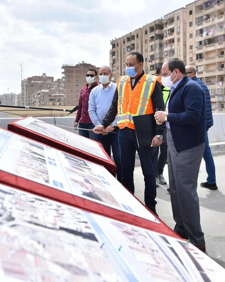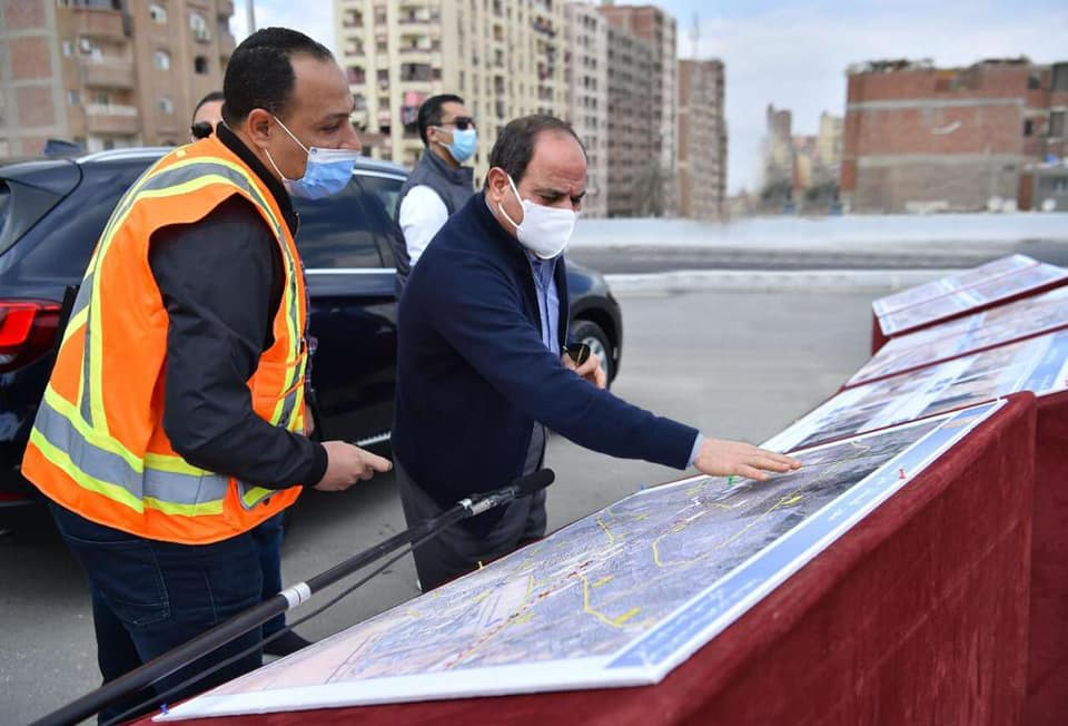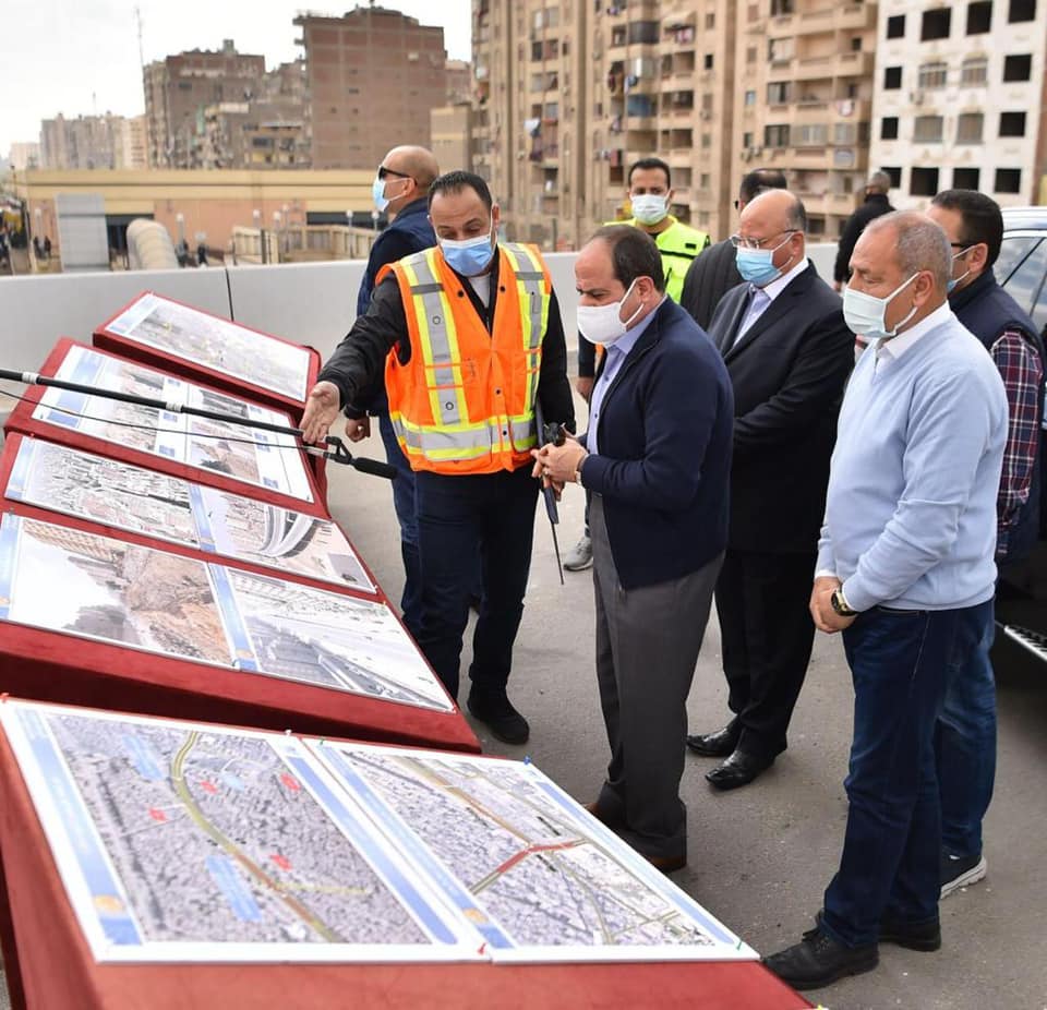 تفقد الرئيس عبد الفتاح السيسي، اليوم الجمعة، أعمال تطوير عدد من المحاور والطرق الجديدة بمنطقة شرق القاهرة.
