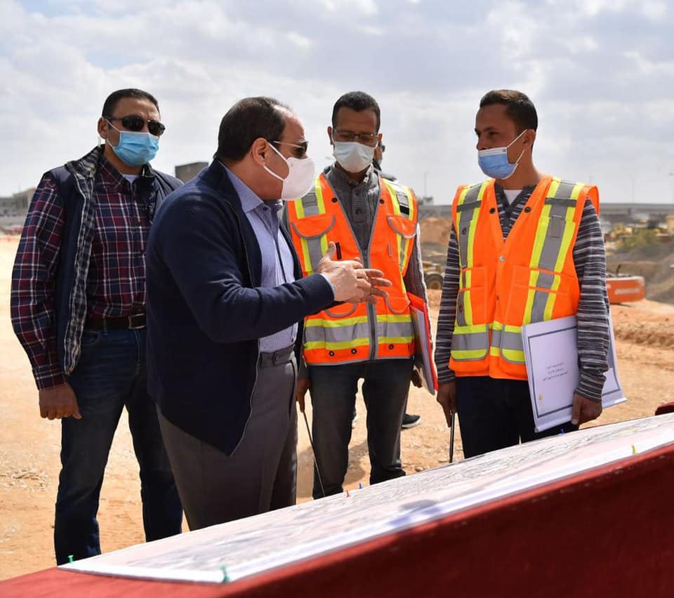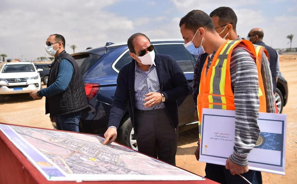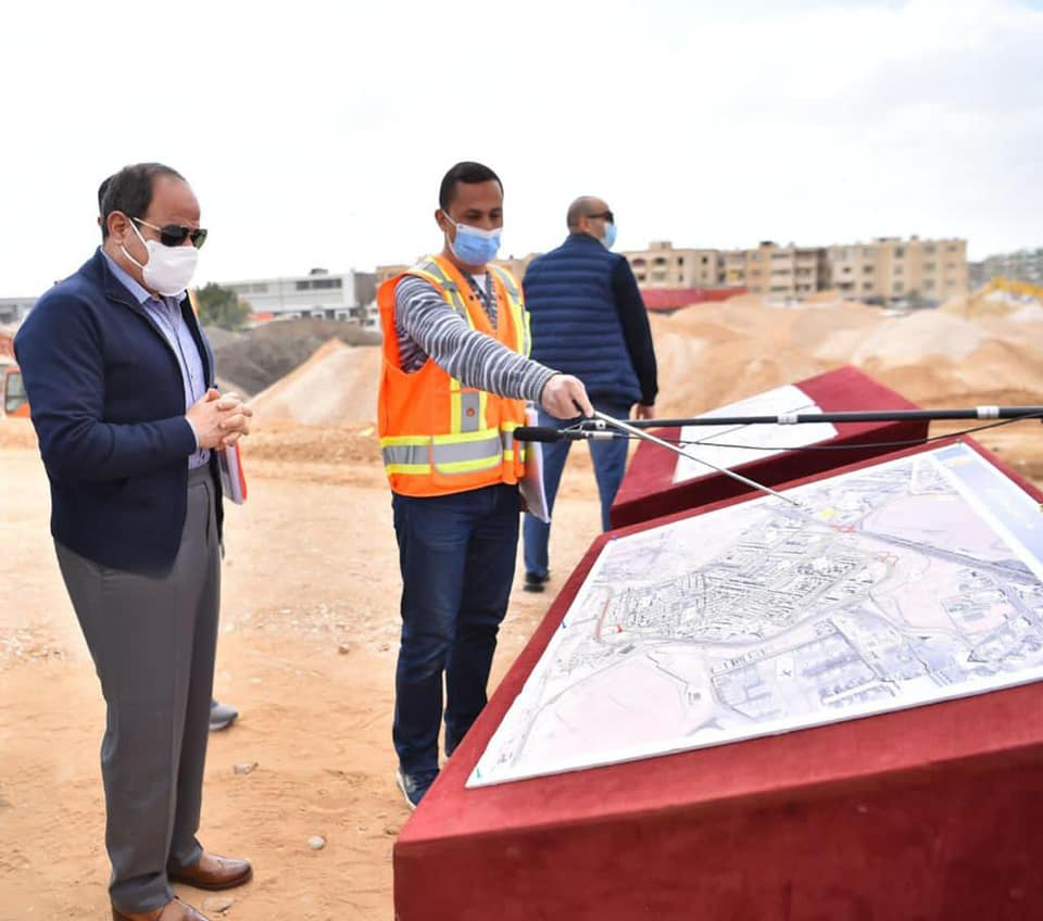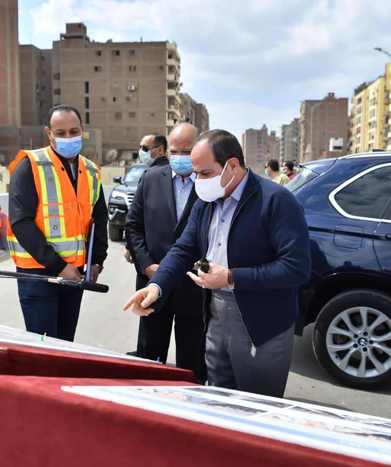 وقد توقف الرئيس أثناء الجولة التفقدية ليناقش العاملين والمسئولين بعدد من مواقع العمل بشأن تفاصيل المشروعات، وليطلع الرئيس على سير الخطوات التنفيذية الراهنة، مشدداً على المبادئ الثابتة بالالتزام بالجداول الزمنية المحددة للانتهاء من الأعمال بالمواصفات الفنية والهندسية العالية، فضلاً عن التطبيق الدقيق للإجراءات الصحية الاحترازية حرصاً على صحة وسلامة العاملين.