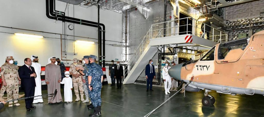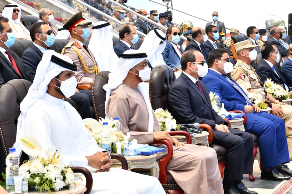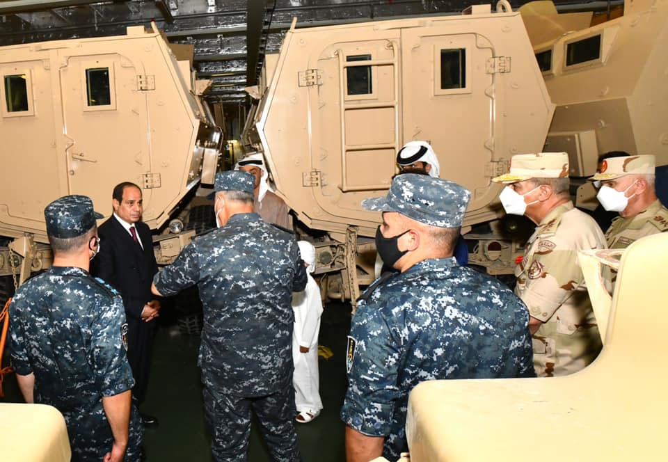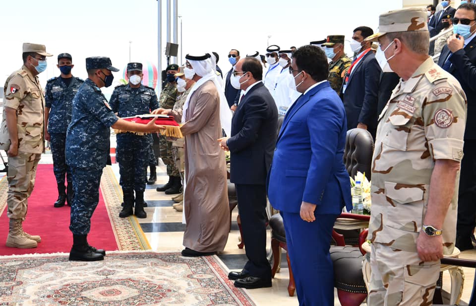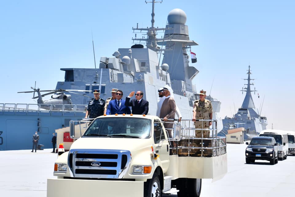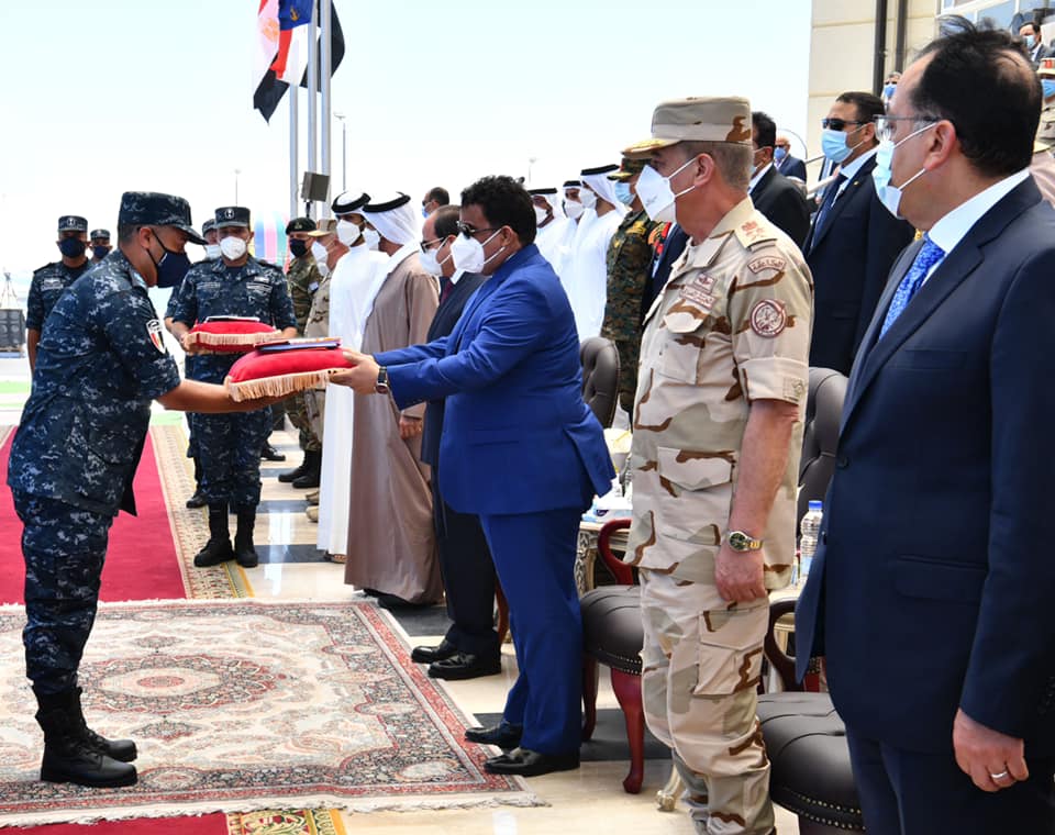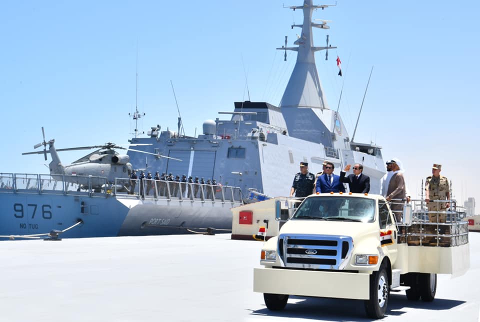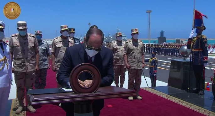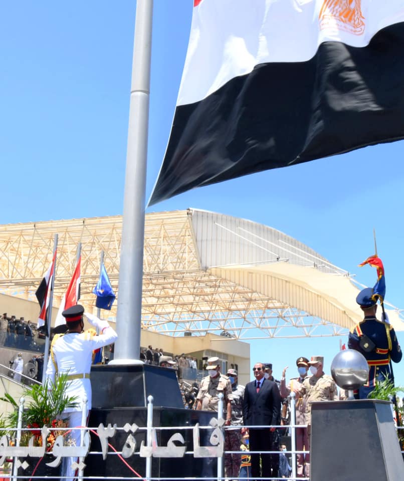 وكان الرئيس السيسي قد تفقد – على متن سيارة مكشوفة، يرافقه عدد من ضيوف مصر – الوحدات البحرية بالقاعدة، وسلم الرئيس، قائد قاعدة 3 يوليو البحرية وقادة الوحدات المنضمة حديثا، أعلام وحداتهم البحرية؛ إيذانا بدخولها الخدمة.
