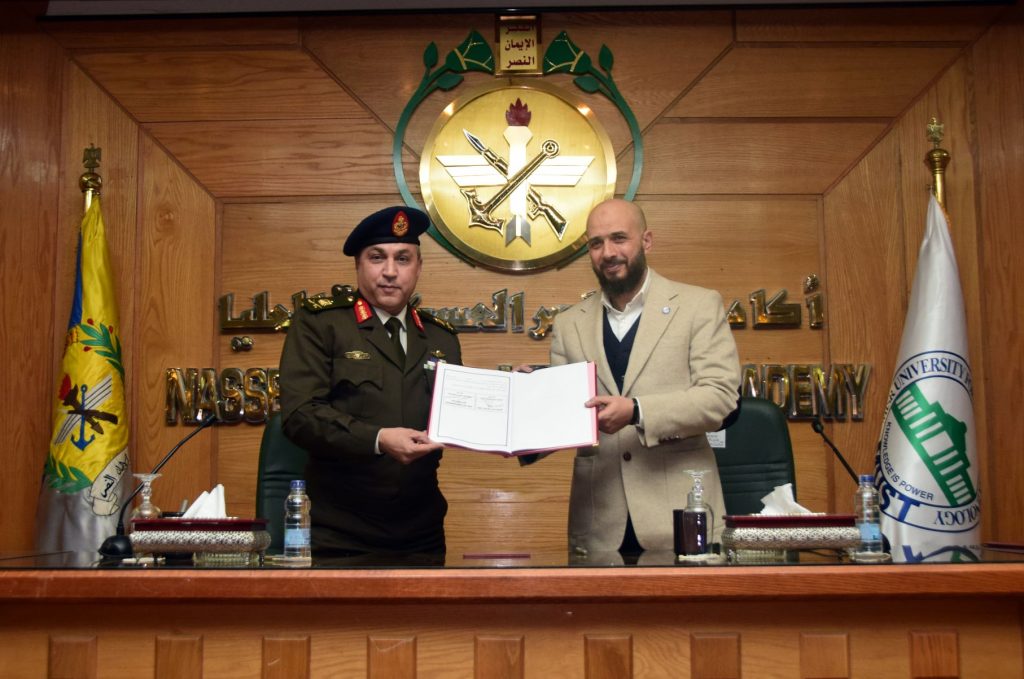 وقعت أكاديمية ناصر العسكرية العليا بروتوكول تعاون مشترك مع جامعة مصر للعلوم والتكنولوجيا، وذلك في إطار حرص القيادة العامة للقوات المسلحة على تبادل الخبرات العلمية والعملية ودعم الأنشطة البحثية بين القوات المسلحة والجامعات المصرية وتحقيق أقصى درجات التعاون المثمر في شتى المجالات.