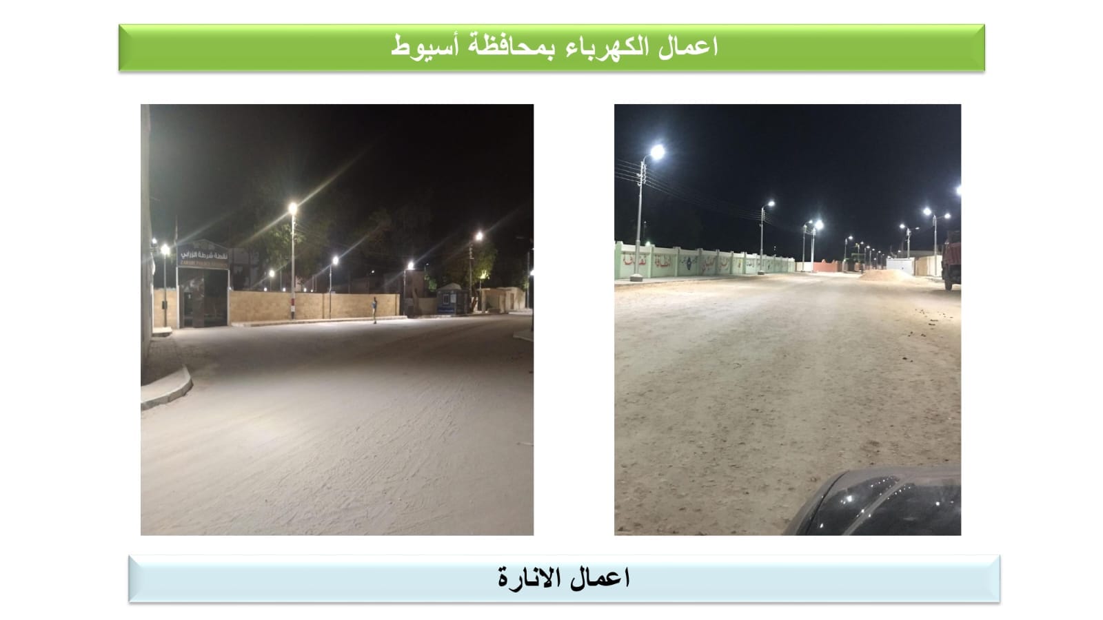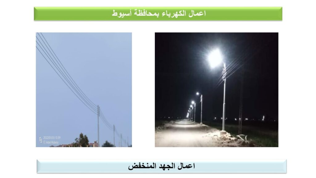 وقال اللواء محمود نصار، رئيس الجهاز المركزى للتعمير: تضم المشروعات المخططة والجارى تنفيذها حاليا بمحافظة أسيوط ضمن المبادرة الرئاسية “حياة كريمة”، أعمال تطوير وتدعيم شبكات الكهرباء والإنارة العامة بـ153 قرية، لتحسين الخدمات المُقدمة للمواطنين، حيث تم إنهاء الأعمال وإطلاق التيار فى 56 قرية، وجارٍ إنهاء تنفيذ الأعمال بـ87 قرية، موضحاً أنه تم التنسيق مع وزارة الكهرباء والطاقة المتجددة لتحديد أعمال الكهرباء المطلوبة بالقرى، وتشمل، تأهيل شبكات الجهد المتوسط القائمة بإحلال المتهالك منها، وتغيير المحولات الهوائية إلى محولات داخل أكشاك صاج أو غرف، ورفع قدرات المحولات لتتناسب مع الأحمال الفعلية، وتغيير كابلات الجهد المتوسط والمنخفض لتتناسب مع الأحمال الفعلية، وتأهيل شبكات الجهد المنخفض القائمة بإحلال المتهالك منها، ورفع كفاءة شبكة الخطوط الهوائية وتغيير ما يلزم، إضافة إلى أعمال الإنارة العامة.
