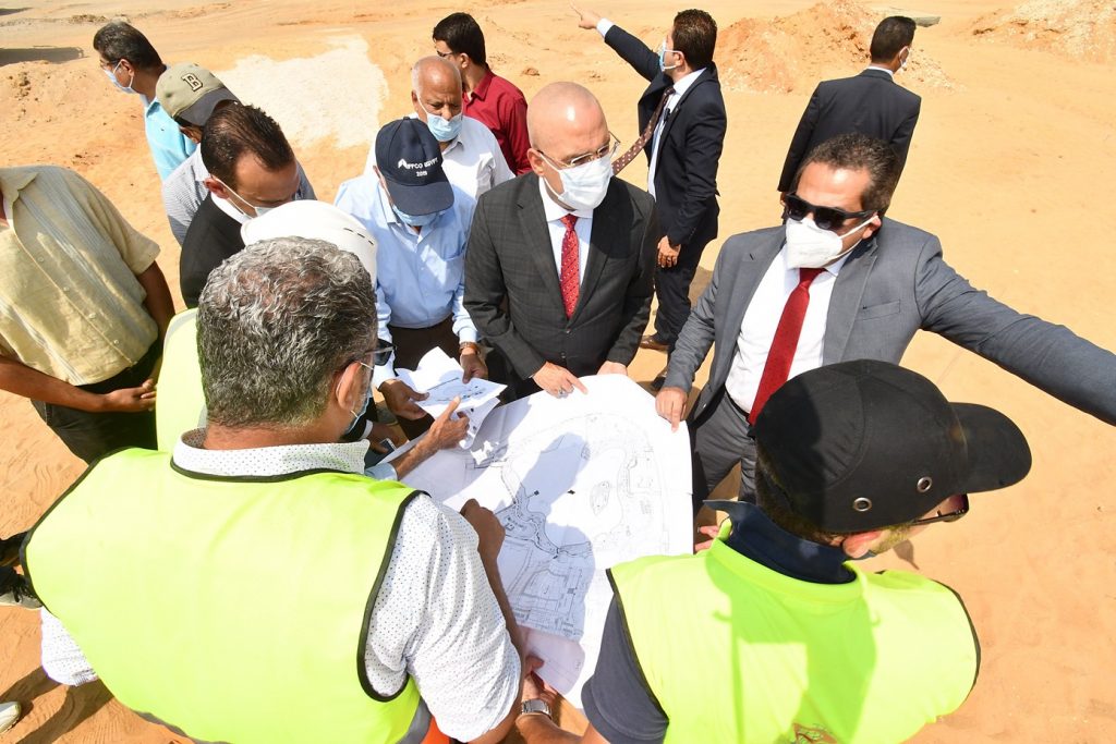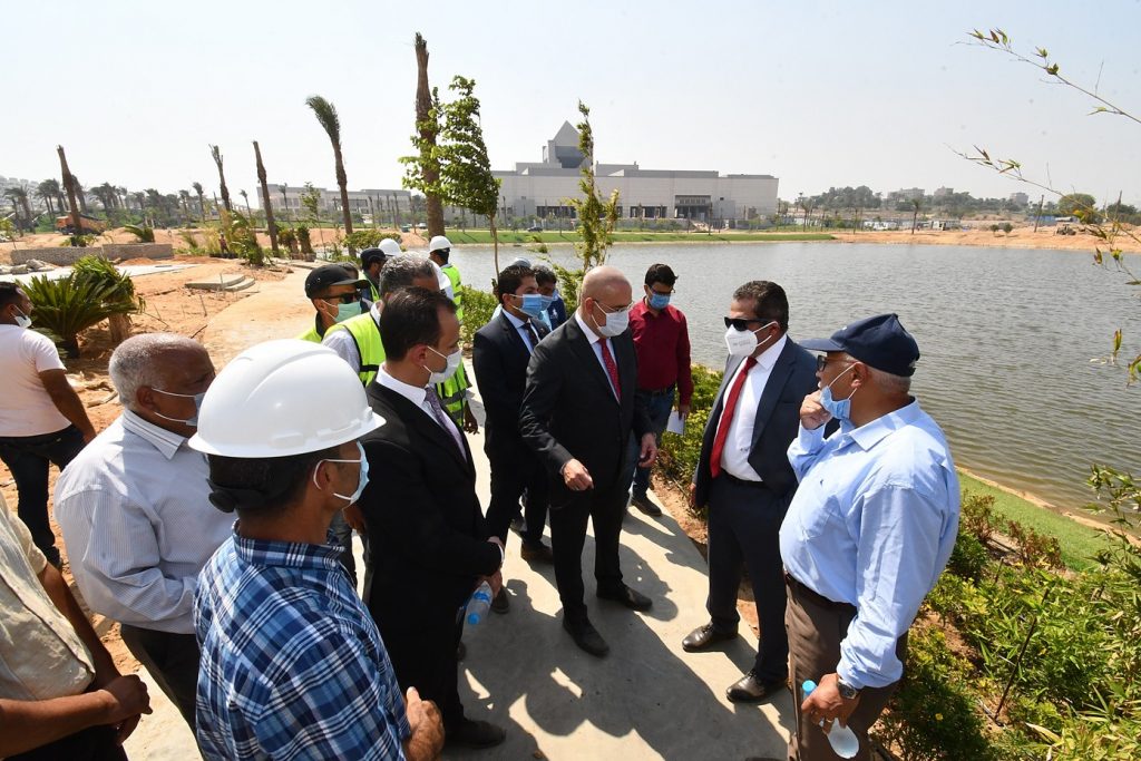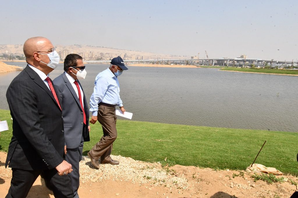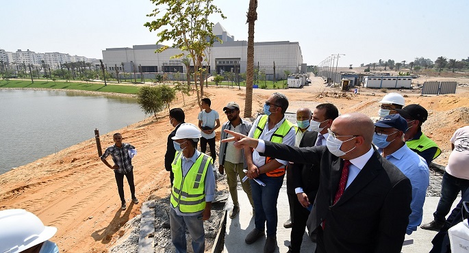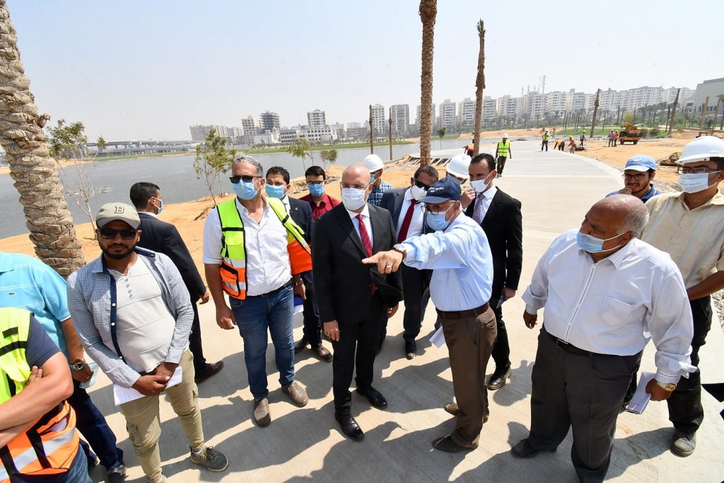 وتجول الوزير ومرافقوه بموقع المشروع لتفقد أعمال تنفيذ المشايات، والتشجير واللاند سكيب، وناقش الموقف التنفيذى مع مسئولى الشركات المنفذة للمشروع، حيث أكد ضرورة الإسراع بمعدلات التنفيذ، والاهتمام بأعمال اللاند سكيب وتنفيذها بأعلى جودة، وتنويع ألوان وأنواع الزهور، وزيادة أعداد النخيل والأشجار المُظللة.