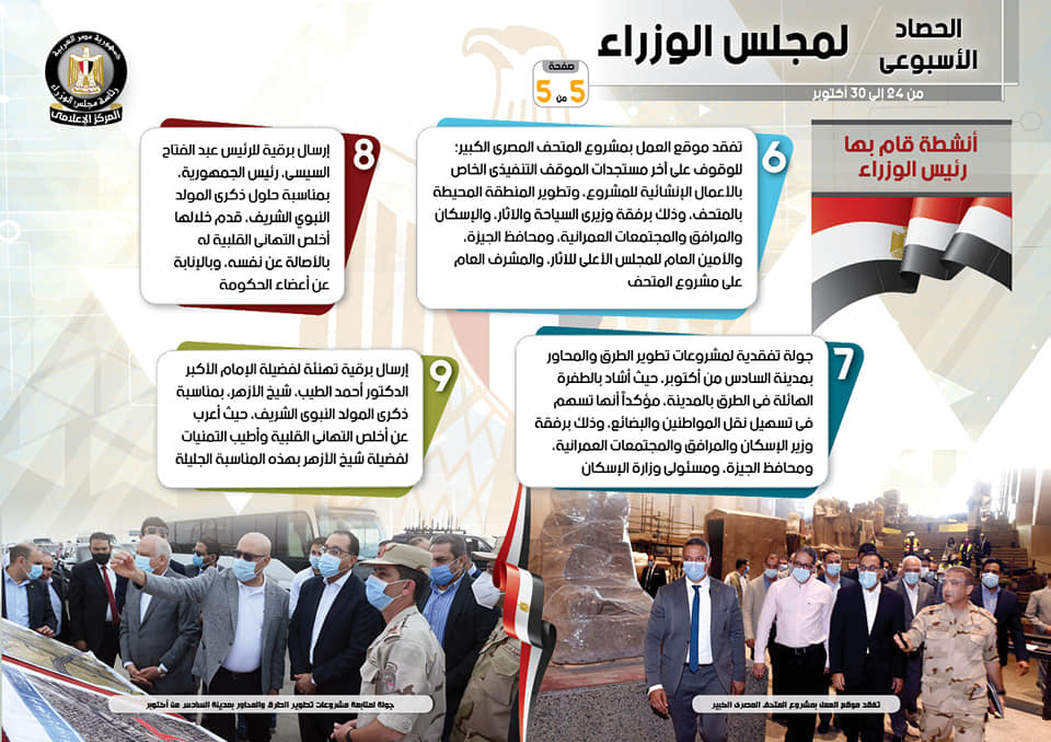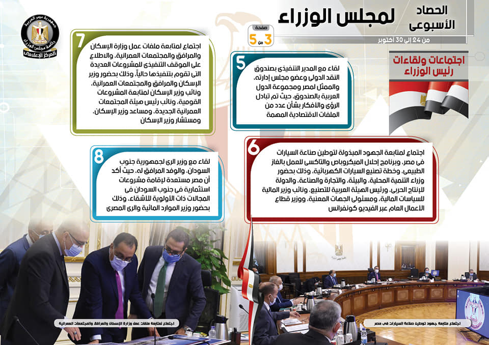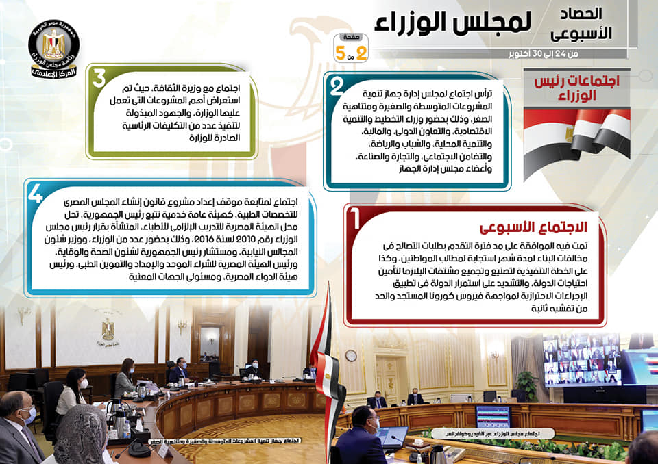 The post بالإنفوجراف.. الحصاد الأسبوعي لمجلس الوزراء خلال الفترة من 24 حتى 30 أكتوبر 2020 first appeared on النيل - قناة مصر الإخبارية.