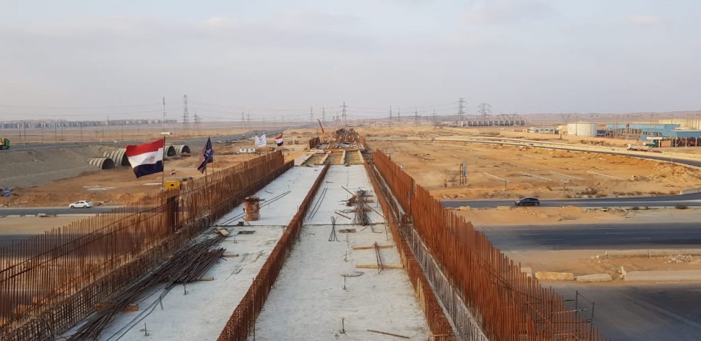 بعدها توجه الوزير لتفقد عدد من القطاعات بمسار تنفيذ أعمال مشروع مونوريل العاصمة الإدارية، الذي يمتد بطول 56.5 كم ويبلغ عدد محطاته 22 محطة، يتم تنفيذه على مرحلتين الأولى، تمتد من موقع الورشة بالعاصمة الإدارية الجديدة حتى محطة مسجد المشير بطول حوالى 45 كم، والثانية تمتد من محطة مسجد المشير حتى محطة الإستاد بطول حوالى 11.5 كم مضيفا أن أجمالي طول مشروعي خطى مونوريل العاصمة الإدارية ومدينة السادس من أكتوبر يبلغ 98.5كم بإجمالي 34 محطة ويتم تنفيذ المشروعين من خلال تحالف يضم شركات (بومبارديه – أوراسكوم – المقاولون العرب).