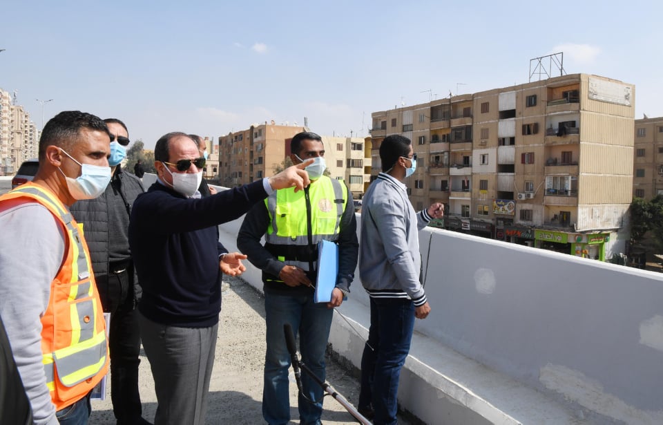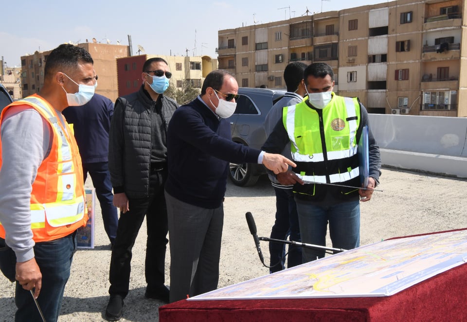 وقد اطلع الرئيس من المسؤولين الانشائيين في بعض مواقع العمل علي الموقف التنفيذي الحالي لعدد من المحاور والطرق مشدداً علي الالتزام بسرعة معدلات الانجاز لاكتمال منظومة شبكة الطرق والمحاور الجديدة في منطقة شرق القاهرة بأكملها وربطها بمناطق القاهرة الكبري والمدن الجديدة، تلك المنظومة الجديدة التي من شأنها ان تحدث نقلة نوعية كبيرة في سلاسة وسرعة تنقل المواطنيين.