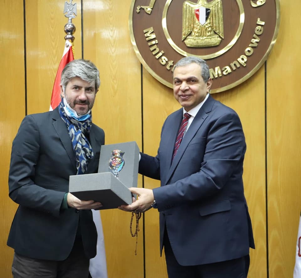 فى مستهل اللقاء رحب الوزير بالحضور ، مؤكدا التعاون المستمر فيما بين الوزارة ، ومكتب المنظمة بالقاهرة ، شركاء الوزارة فى مشروعاتها من أجل خدمة العمل والعمال في الدولة المصرية ، مشيرا إلي أن الوزارة تقوم في الفترة الحالية والإعداد لإجراء انتخابات التنظيمات النقابية للدورة النقابية الجديدة 2022/2026 بعد عيد الفطر المبارك، مؤكدا أنه سيتم إجراؤها بشكل مختلف عن الدورة السابقة ، حيث تم اعداد قاعدة بيانات للتنظيم النقابي المصري وتشمل 99% من بيانات العمال المسجلين في الدورة السابقة 2018.