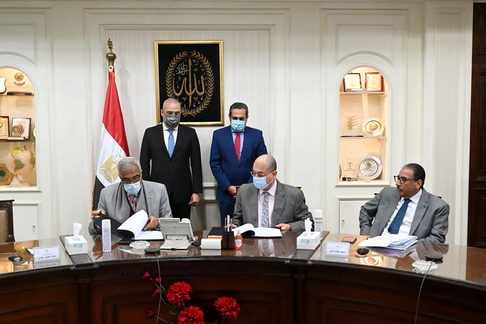 شهد الدكتور عاصم الجزار، وزير الإسكان والمرافق والمجتمعات العمرانية، توقيع عقد اتفاق بشأن تفويض الشركة العربية للمشروعات والتطوير العمراني فى بيع الوحدات السكنية المملوكة لهيئة المجتمعات العمرانية الجديدة، بمشروعى الرحاب ومدينتى بمدينة القاهرة الجديدة، وقام بالتوقيع كل من، المحاسب أحمد سعيد، مساعد وزير الإسكان، والمشرف على قطاع الشئون المالية والإدارية بهيئة المجتمعات العمرانية الجديدة، والسيد/ هشام طلعت مصطفى، الرئيس التنفيذي والعضو المنتدب للشركة العربية للمشروعات والتطوير العمراني.