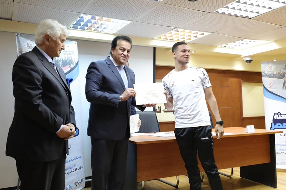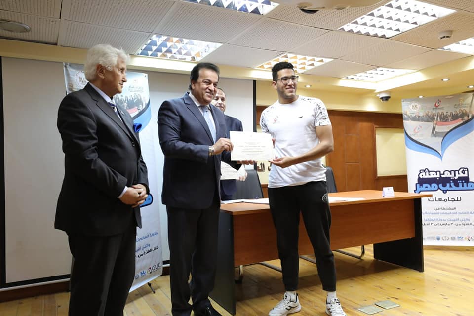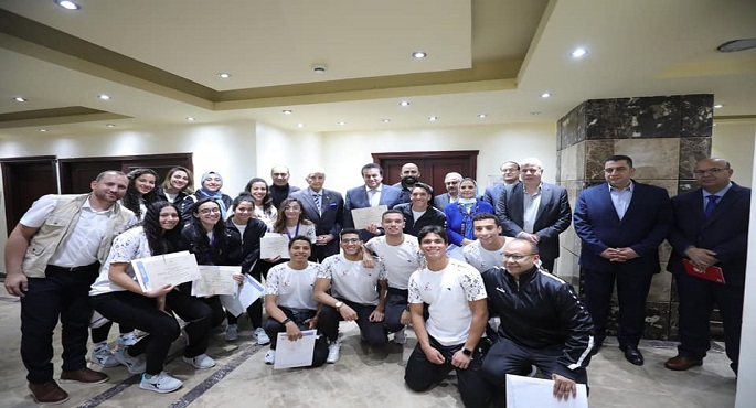 وعلى هامش الاجتماع، كرم د.عبدالغفار بعثة مُنتخب مصر للجامعات لمُشاركته فى بطولة العالم للجامعات للسباحة بالزعانف، والتى أقيمت بإيطاليا خلال الفترة من 30 مارس الماضى وحتى 3 أبريل الجارى، بمُشاركة 90 طالبًا وطالبة من 55 جامعة بـ 15 دولة على مستوى العالم، موجهاً التهنئة للفائزين في البطولة، مؤكدًا على تقديم كافة أوجه الدعم للعبة السباحة سواء على المستوى المحلي أو العربي.