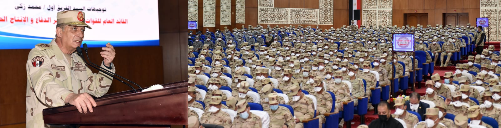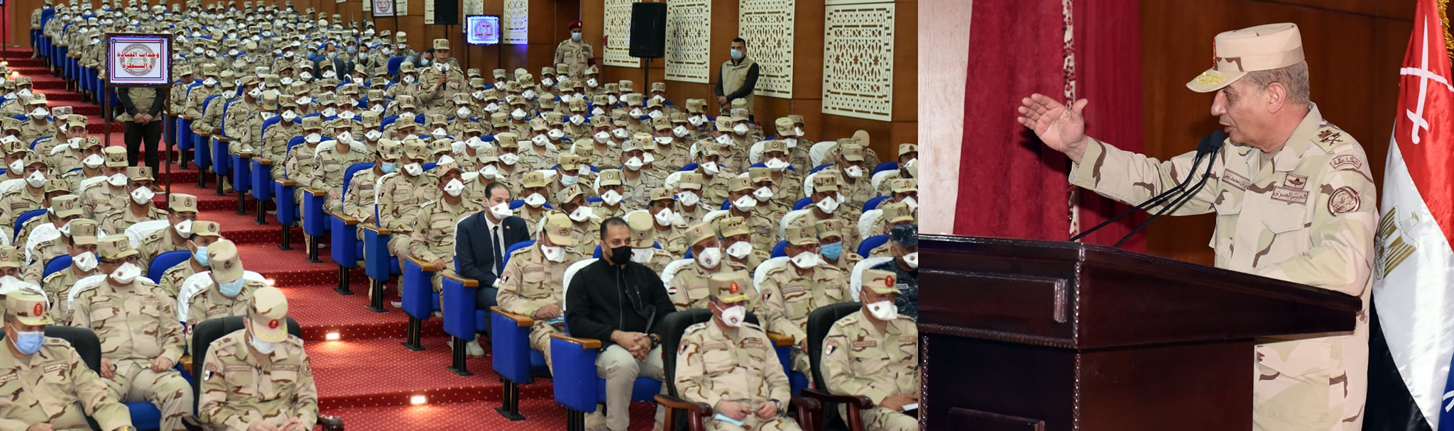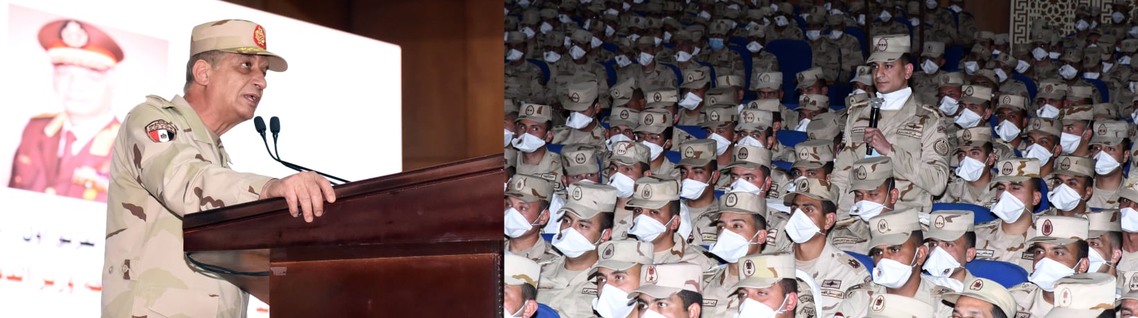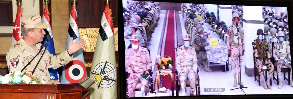ونقل القائد العام للقوات المسلحة تحيات وتقدير السيد الرئيس عبد الفتاح السيسى رئيس الجمهورية القائد الأعلى للقوات المسلحة لمقاتلى الجيش الثانى الميدانى والمنطقة الغربية العسكرية ، كما هنأهم بقرب حلول شهر رمضان المعظم ، مشيداً بتفانيهم فى آداء مهامهم على أكمل وجه ، فضلاً عن دورهم البطولي في الحفاظ على الأمن والإستقرار .