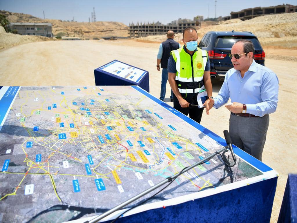 تفقد الرئيس عبد الفتاح السيسي بعد ظهر اليوم الجمعة الأعمال الإنشائية لتطوير عدد من الطرق والمحاور بالقاهرة الكبرى.