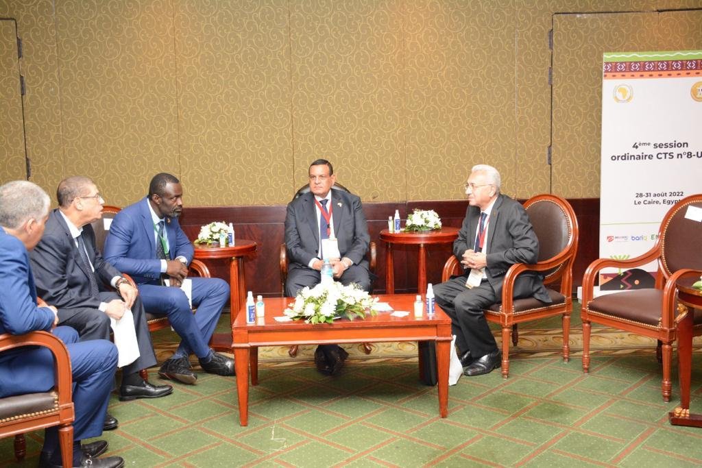 عقد وزير التنمية المحلية هشام آمنة عدداً من اللقاءات الثنائية مع الوفود الأفريقية المشاركة في اجتماعات الدورة العادية الرابعة للجنة الفنية المتخصصة التابعة للاتحاد الافريقي حول الخدمة العامة والحكومات المحلية والتنمية الحضرية واللامركزية، اليوم الخميس، التي عقدت بالقاهرة.