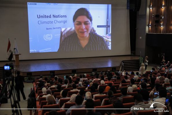 وبالنيابة عن الدكتور أحمد زايد؛ مدير مكتبة الإسكندرية، أكدت د/ مروة الوكيل- رئيس قطاع البحث الأكاديمي، أن مكتبة الإسكندرية استجابت لاستضافة هذا الحدث الهام الذي يعد أكبر تجمع لمتطوعي قمة المناخ انطلاقًا من دورها كمؤسسة وطنية تدعم جميع الشراكات مع الوزارات والهيئات المختلفة، لافتة إلى أن هذا العمل التطوعي يعد مهمة قومية لهؤلاء الشباب، فهم يمثلون واجهة مصر أمام دول العالم المختلفة.
