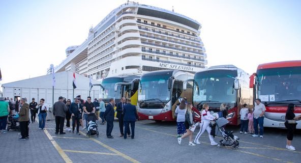 وفي هذا الصدد، تم التنسيق بين كافة الجهات المعنية بالميناء لتسهيل عملية دخول السفينة السياحية إلى الميناء وتسهيل حركة نزول وصعود الركاب من وإلى الرصيف.