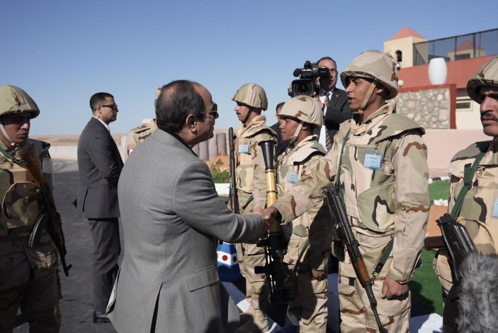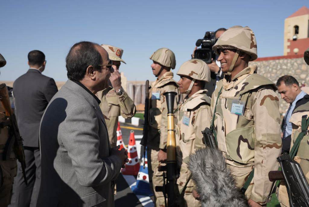 كما التقى الرئيس السيسي القادة والضباط وضباط الصف والجنود من مقاتلي قيادة قوات شرق القناة لمكافحة الإرهاب والجيشين الثاني والثالث الميدانيين، وأشاد خلال اللقاء بالجهود المبذولة للحفاظ على الأمن والاستقرار بتلك الرقعة الغالية من أرض الوطن.