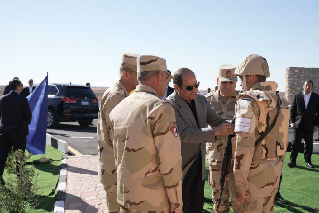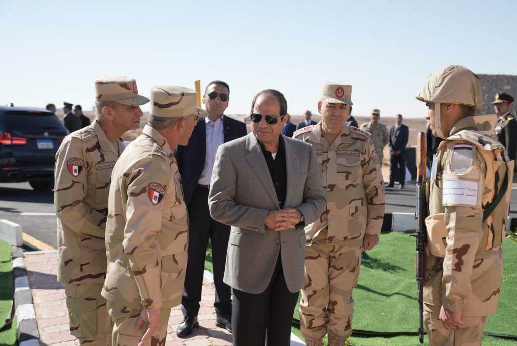 وتزامنا مع ذكرى انتصارات العاشر من رمضان قام الرئيس السيسي، يرافقه الفريق أول محمد زكي القائد العام للقوات المسلحة وزير الدفاع والإنتاج الحربي، والفريق أسامة عسكر رئيس أركان حرب القوات المسلحة، بتفقد الارتكازات الأمنية بنطاق قوات شرق القناة لمكافحة الإرهاب؛ وذلك للاطمئنان على الحالة المعنوية والأحوال المعيشية والإدارية للمقاتلين أثناء تنفيذهم مهامهم، وأثنى الرئيس السيسي على الاستعداد والجاهزية القتالية لعناصر القوات المسلحة، معربا عن تقديره لجهودهم وتضحياتهم للحفاظ على أمن الوطن وسلامة أراضيه.
