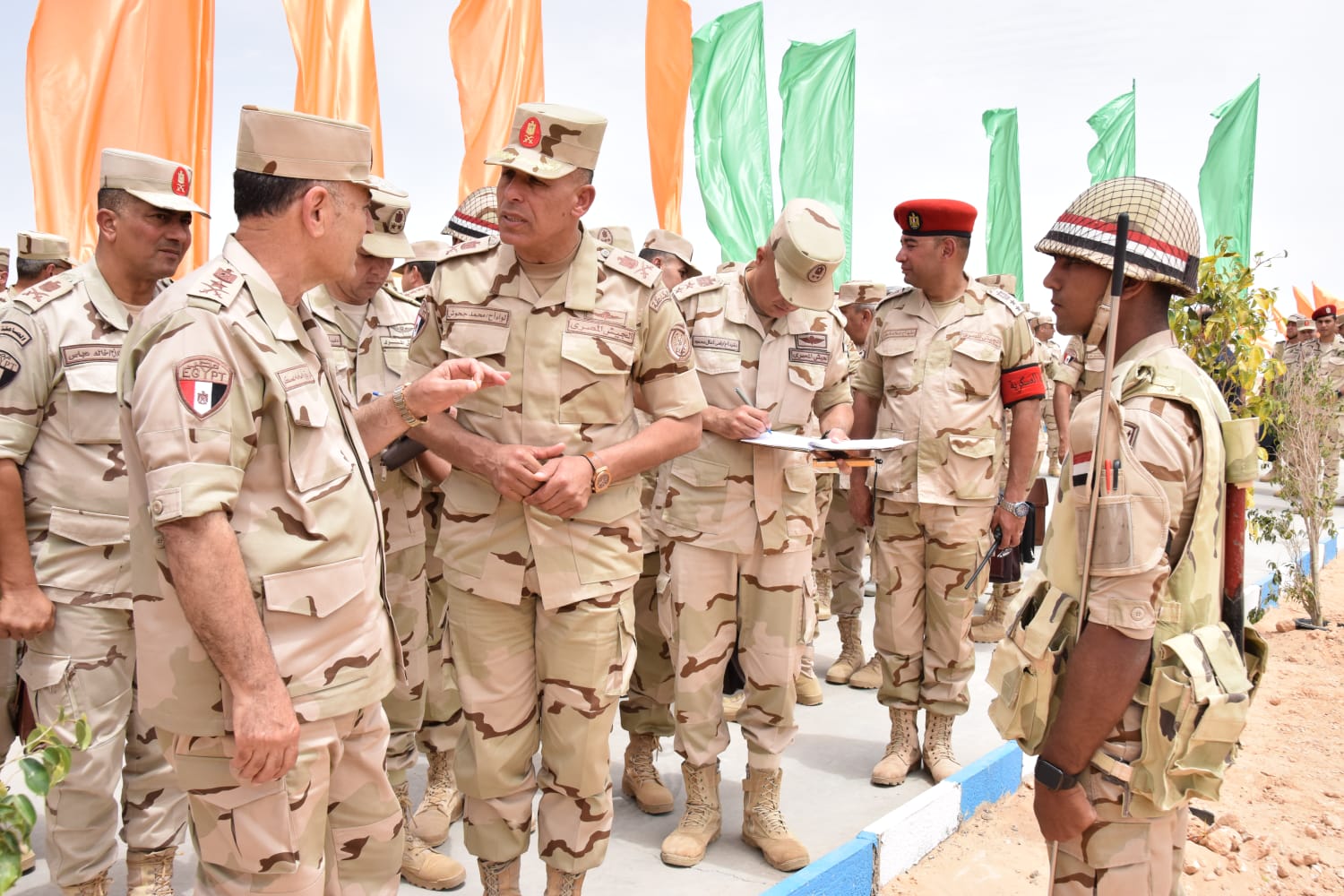 كما ناقش عدداً من القادة والضباط المشاركين بالمشروع فى تنفيذ مهامهم وقام بفرض عدد من المواقف الطارئة للتأكد من قدرتهم على اتخاذ القرار السليم أثنـاء سير العمليات، مشيداً بالقرارات المتخذة والأداء المتميز الذى وصلت إليه العناصر المنفذة للمشروع، وحضر تنفيذ المرحلة عدد من قادة القوات المسلحة .