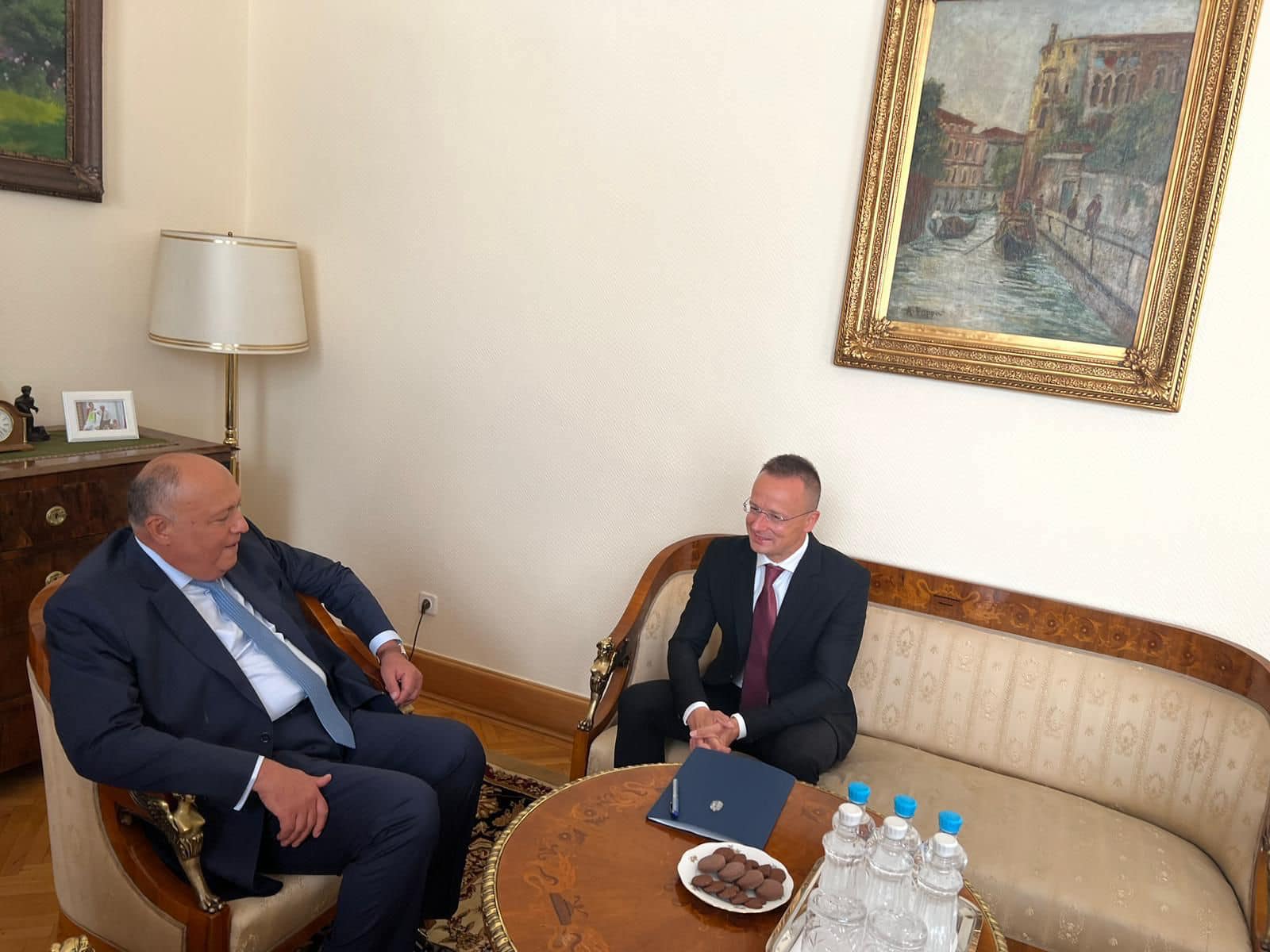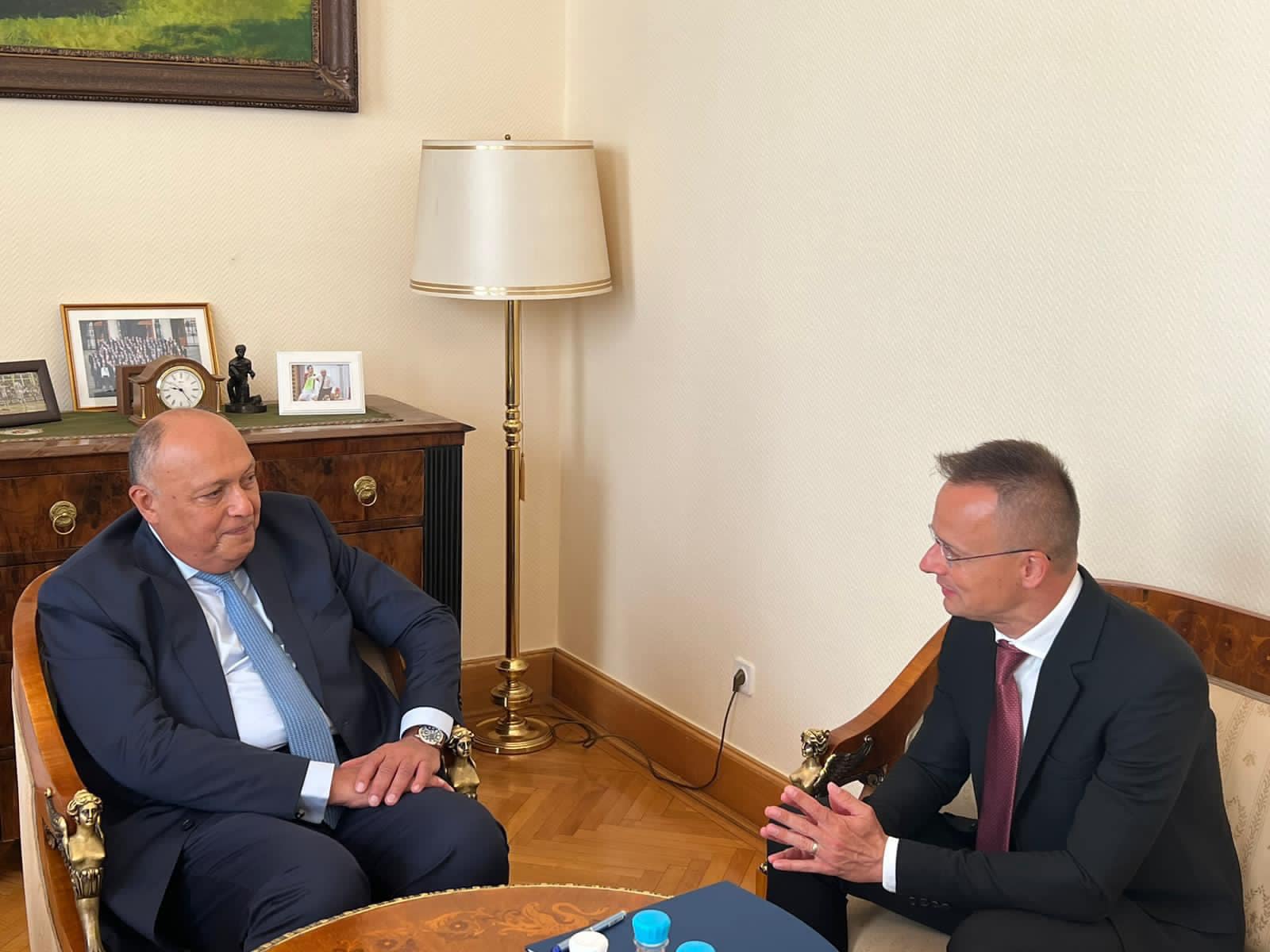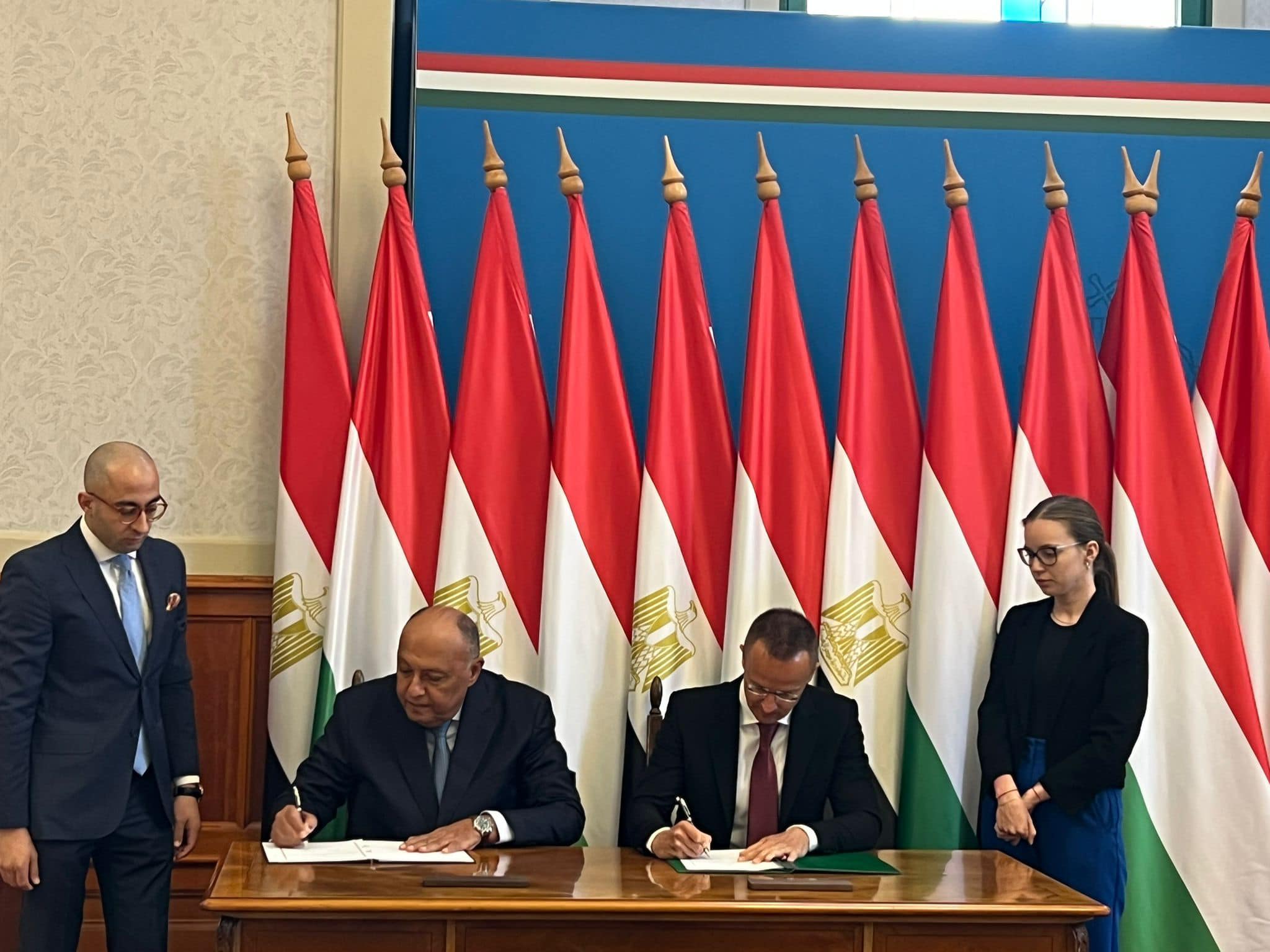 ومن جانبه، أعرب وزير الخارجية والتجارة المجري عن التشرف بزيارة وزير الخارجية والتي تتزامن مع الاحتفال بمرور 95 عاماً على العلاقات الدبلوماسية بين مصر والمجر. كما ثمن الوزير المجري عالياً موقف مصر في التعامل مع قضية الهجرة غير الشرعية، لاسيما مع احتدام الأزمة الحالية التي يشهدها السودان، داعياً الاتحاد الأوروبي إلى زيادة دعم مصر للتعامل مع تبعات تلك الأزمة. كما تناول الوزير المجري التعاون المطرد بين مصر والمجر فى العديد من المجالات.