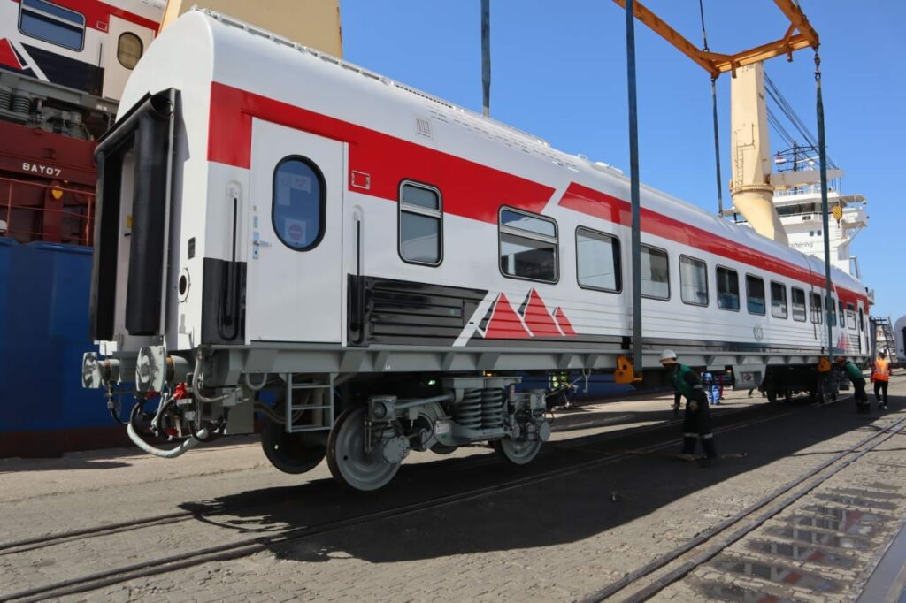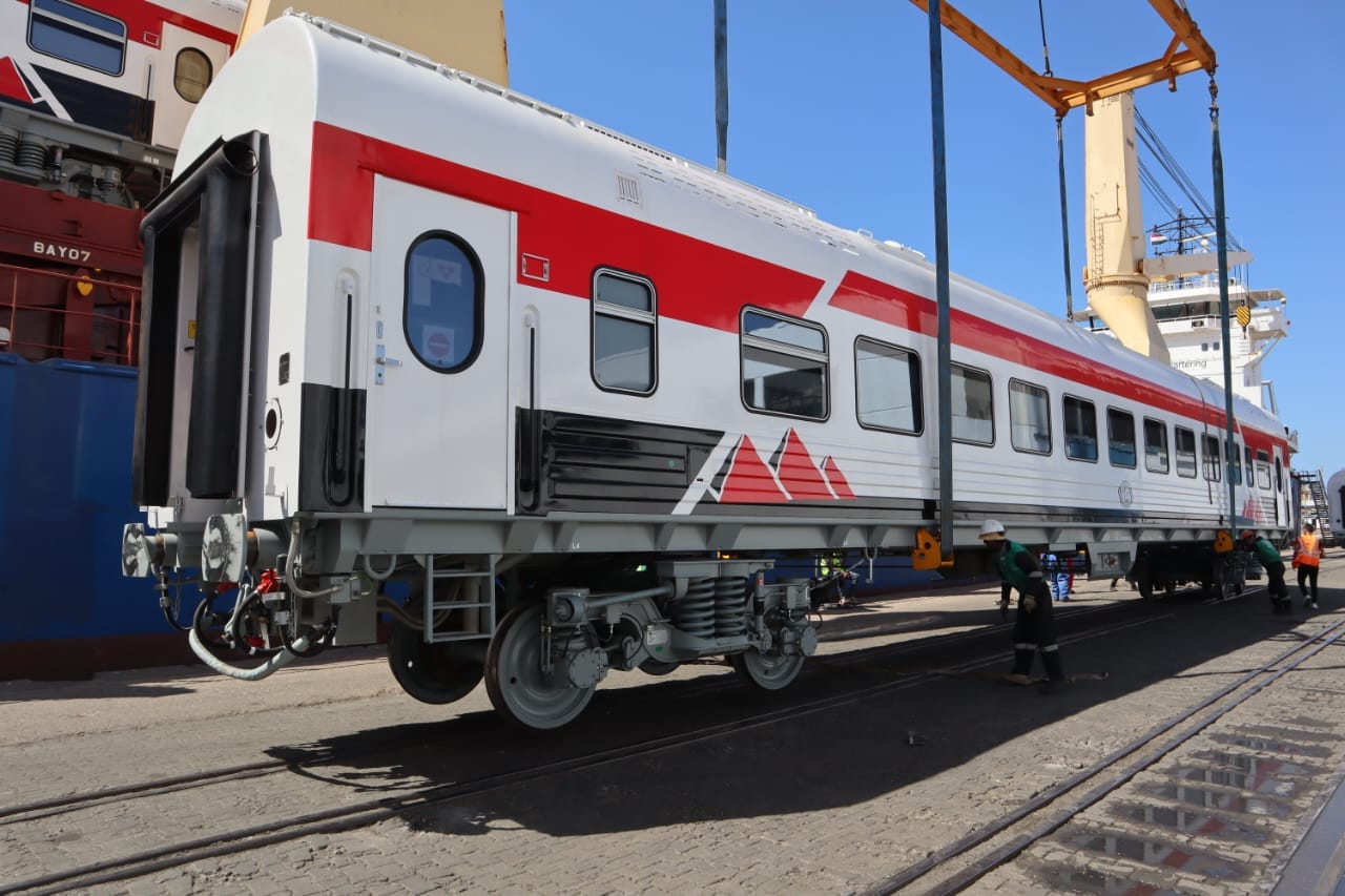 أعلن المهندس كامل الوزير- وزير النقل وصول 15 عربة درجة ثالثة مكيفة جديدة من عربات ركاب السكك الحديدية إلى ميناء الإسكندرية قادمة من المجر ليصل اجمالي ما تم الانتهاء من توريده حتى الان الى عدد 800 عربة (499 عربة تهوية ديناميكية + عدد 301 عربة درجة ثالثة مكيفة ) على أن يتوالى بعد ذلك وصول باقي العربات على دفعات وفقًا للجدول الزمني المحدد وذلك في إطار صفقة ال(1350) عربة سكة حديد جديدة للركاب .